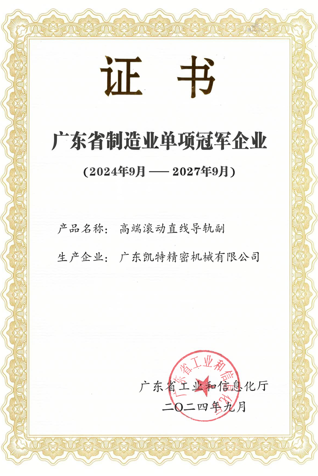 這一年,凱特精機(jī)在技術(shù)創(chuàng)新、工藝改進(jìn)、產(chǎn)品性能、銷(xiāo)售服務(wù)等方面進(jìn)行了不斷改善,獲2024廣東省省級(jí)制造業(yè)單項(xiàng)冠軍、滾珠絲杠副產(chǎn)品獲國(guó)檢中心5A認(rèn)證、首屆江門(mén)智造“金銳獎(jiǎng)”技術(shù)創(chuàng)新獎(jiǎng)等多項(xiàng)榮譽(yù),并牽頭發(fā)布《高端機(jī)床用滾動(dòng)直線導(dǎo)軌副技術(shù)規(guī)范》團(tuán)體標(biāo)準(zhǔn)。每一個(gè)成就都凝聚著全體同事的智慧與汗水,都彰顯了激烈市場(chǎng)競(jìng)爭(zhēng)中凱特的強(qiáng)大實(shí)力與卓越品質(zhì)。