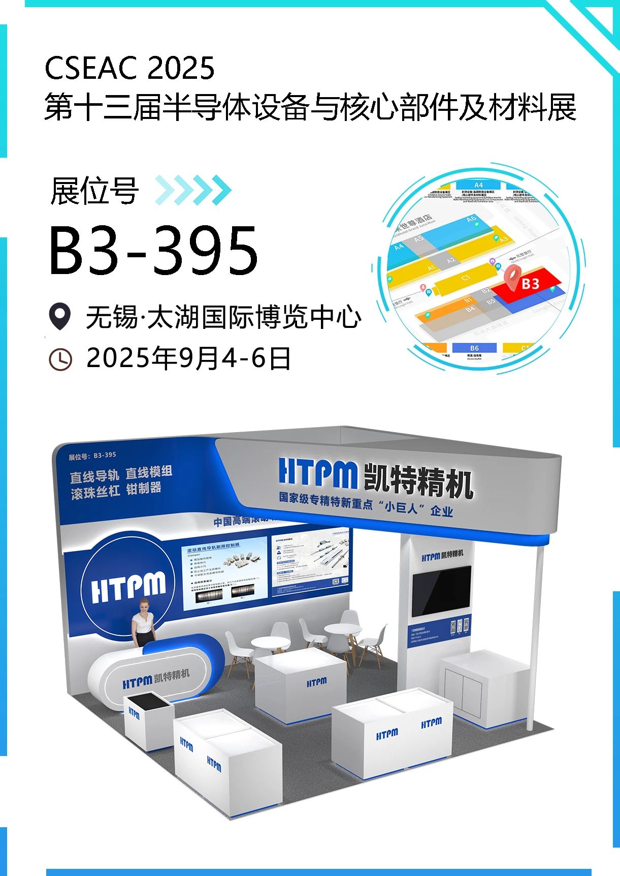 2025年9月4-6日,CSEAC 2025第十三屆半導(dǎo)體設(shè)備與核心部件及材料展在無錫太湖國際博覽中心盛大召開,作為國內(nèi)領(lǐng)先的滾動功能部件研發(fā)制造的高新技術(shù)企業(yè),凱特精機(jī)將攜高性能、高質(zhì)量的滾動直線導(dǎo)軌、直線模組、鉗制器、滾珠絲杠副等產(chǎn)品亮相,全面展示凱特精機(jī)在半導(dǎo)體設(shè)備領(lǐng)域的新技術(shù)、新產(chǎn)品、新亮點、新趨勢,構(gòu)建起了半導(dǎo)體產(chǎn)業(yè)交流融合的新生態(tài)。